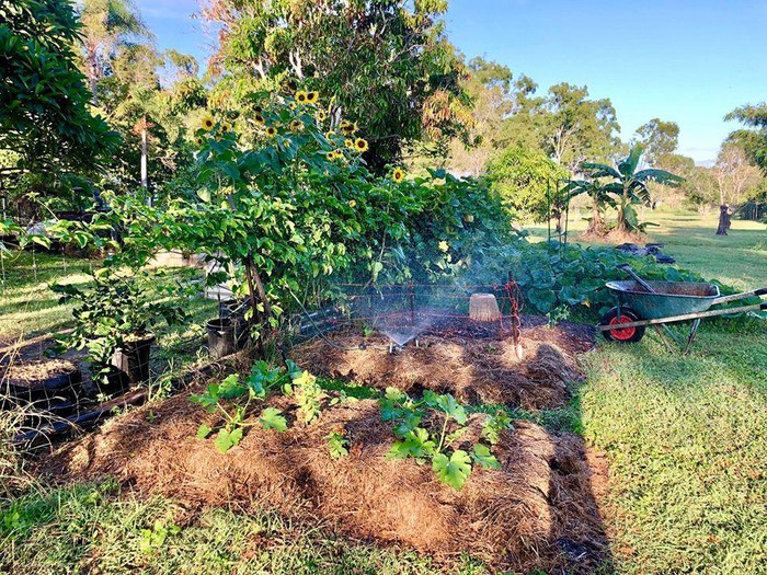 Họ có một khu vườn rộng, khoảng diện tích lên đến 1,3ha giúp chị thiết lập một cuộc sống xanh tươi bên thiên nhiên, cây cỏ.