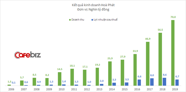 Theo đó, Hòa Phát đặt mục tiêu doanh thu 70.000 tỷ đồng, tăng trưởng 24% so với năm 2018. Tuy nhiên, chỉ tiêu lợi nhuận lại giảm 22%, xuống 6.700 tỷ đồng. Nếu đạt kết quả đúng như kế hoạch, đây sẽ là lần đầu tiên trong 7 năm, lợi nhuận Hòa Phát sụt giảm.