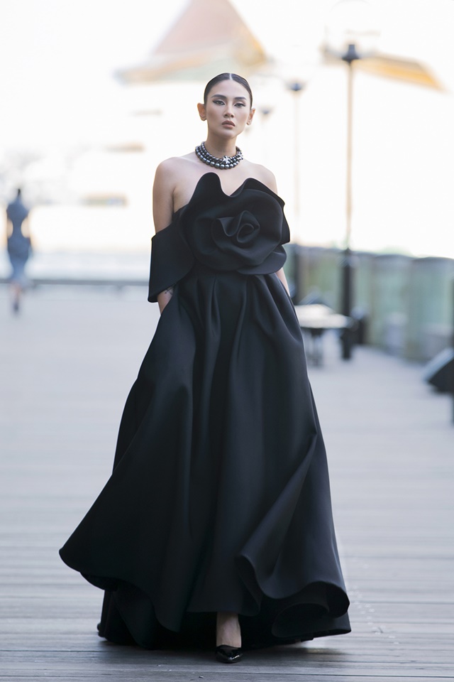 Võ Hoàng Yến chốt màn cho phần 1 của BST Back to nature lần này. Nữ siêu mẫu xuất hiện đầy quyến rũ trong chiếc đầm dài màu đen, có hoạ tiết hoa 3D to ở ngực váy. Đường catwalk khá dài nhưng vẫn không thể làm cản trở những sải bước mạnh mẽ, đầy nội lực và chuyên nghiệp của Võ Hoàng Yến. Gương mặt góc cạnh, sắc sảo của Võ Hoàng Yến trở thành điểm nhấn đầy thu hút.