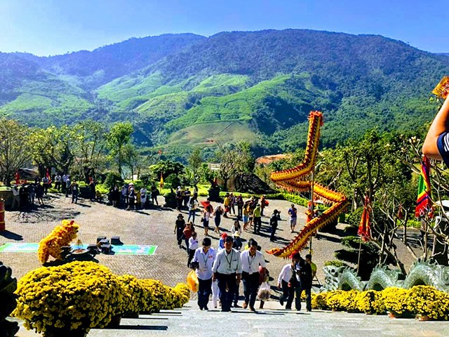 Ngày 14/2, trùng ngày Vía Thần Tài, rất nhiều người dân cùng lên Núi Thành Tài, huyện Hòa Vang, TP Đà Nẵng để cầu mong tài lộc.