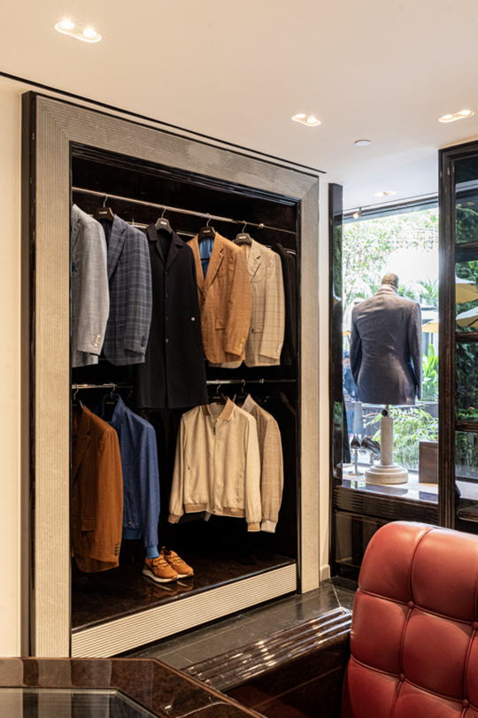 Như một bảo tàng thời trang, không gian cửa hàng càng làm nổi bật những thiết kế cao cấp của nhà mốt, đặc biệt là những bộ suit may đo thủ công “100% Made in Italy”. Mỗi bộ suit là một tác phẩm nghệ thuật, mang đậm dấu ấn của sự hoàn hảo và tinh thần thượng lưu, thể hiện gu thẩm mỹ tinh tế và sự trân trọng giá trị đích thực của người Ý.